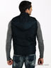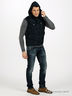 Детали: высокий ворот. Капюшон убирается в ворот. Два врезных кармана, два накладных на клепке. Без рукавов. Застежка на пластмассовой молнии. Внутренний карман на липучке. В комплекте дополнительные клепки.
