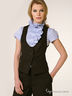 Классический жакет приталенного силуэта. Выполнен из приятного на ощупь материала. U-образный вырез горловины. Без рукавов. Спереди застежка на пуговицы. Прекрасный деловой вариант!