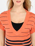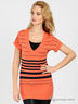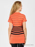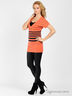 Детали: окантовка V-образного выреза, манжеты и низ изделия в виде трикотажной резинки; короткий цельнокроеный рукав; принт - полоска