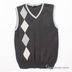 Прекрасный жилет выполнен из шерстяного трикотажа. V-образный вырез горловины отделан трикотажной бейкой, короткие рукава, подол так же посажен на резинку, классическая вышивка ромбами. Стильный вариант под рубашку, так же станет отличным завершением классического образа.