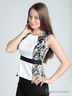 Топ с фигурным вырезом горловины. Эффект "2 в 1". Ткань с рисунком. Полуприлегающий силуэт, длина до линии бедер.