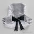 Модель на лямках застегивается на две пуговицы. Два передних кармана. Полочка декорирована бантиком из атласной ленты и подвеской. Сзади хлястик в виде банта из атласной ленты.