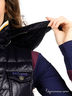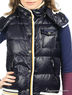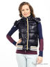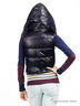 Стильный женский жилет с застежкой на молнию, ветрозащитный клапан с застежкой на кнопки. Капюшон отстегивается от изделия. На груди - накладной карман на кнопке, по бокам - втачные карманы на молнии. Низ изделия выполнен из трикотажной резинки.