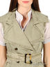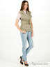 Детали: отложной ворот с лацканами, двубортная модель, застежка на пуговицы, пришиты шлевки, вставлен пояс, эффект потертости