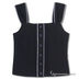 Оригинальный жилет прямого кроя. Широкие бретели, застежка на пуговицы, обтянутые атласной тканью.