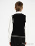 Жилет прямого кроя с округлым вырезом горловины. Ворот, проймы и низ изделия - трикотажные резинки. Полочка украшена аппликацией.