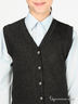 Темно-серый трикотажный жилет. Застегивается на пуговицы. Окантована полосами из трикотажа в рубчик.