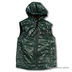 Жилет прямого силуэта. Регулирующийся капюшон. Без рукавов. Два передних кармана, один нагрудный карман. Застежка на молнии, три прорезных кармана на молнии.