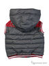Принтованный жилет с капюшоном – стильная вещица осеннего гардероба. Контрастная отделка и шрифтовая аппликация придают динамичность всему изделию, а выделюящейся деталью является вставка декоративной резинки в манжеты.
