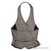 Приталенная модель с лямкой на шее застегивается на три пуговицы на полочке по всей длине изделия. Пришиты шлевки, продет пришитый ремешок, завязывающийся на спинке.