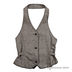 Приталенная модель с лямкой на шее застегивается на три пуговицы на полочке по всей длине изделия. Пришиты шлевки, продет пришитый ремешок, завязывающийся на спинке.