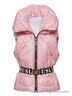 Стильный жилет жемчужно-розового цвета скроен по последнему слову моды. Высокий воротник, который служит не только защите от холода, но и декоративным целям, напоминает нам о стиле 90-х, который сейчас особенно популярен. Необычные врезные карманы и нарядный брелок на молнии придают модели особый лоск, и в то же время очень удобны. Контрастный пояс с белыми буквами на черном фоне добавляют модели немного остроты. Этот жилет создан для активных девочек, которые даже на прогулке хотят выглядеть безупречно!