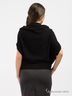 Жилет из вязаного трикотажа, свободного силуэта, рукав летучая мышь, рукав короткий, воротник хомут. На полочке вязаные карманы. Модель трансформер.