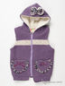 Теплый и мягкий жилет из трикотажа с начесом. Модель дополнена капюшоном, декорированным бантом. Центральная застежка на молнии. На полочках оригинальные кармашки "сердечки". Трикотажная манжета по низу изделия. На полочках кружевные вставки.