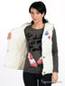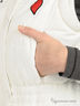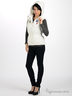 Детали: в край капюшона вставлена регулирующая резинка, ворот-стойка, застежка на молнию и кнопки, присбаривающая резинка по линии талии, трикотажная манжета, два передних кармана на скрытой молнии, декоративные нашивки и вышивка на полочке