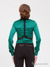 Классический жилет приталенного кроя на пуговицах. Спинка выполнена в виде тонких перекрещивающихся тесемок.