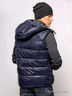 Модный жилет из гладкого, стеганного материала. Модель дополнена капюшоном с застежкой на кнопки. Застежка на молнию. Спереди два прорезных кармана. Отличны вариант на каждый день.