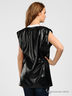 Эффектный женский жилет из мягкой ткани с эффектом замши и ткани с покрытием под кожу. Двусторонняя модель.V-образный вырез горловины. Застежка спереди на замшевые ленты.