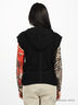 Теплый трикотажный жилет с капюшоном. Капюшон с сетчатой подкладкой, по краю кулиска. Жилет застегивается на молнию. На плечах сетчатые вставки. Два маленьких накладных кармана. В комплект входит тонкий поясок.