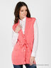 Повседневный жилет из эластичного вискозного трикотажа средней плотности с отложным воротом и V-образным вырезом горловины. Застежка на пуговицы, по линии талии пришиты шлевки, поясок в комплекте. Два передних кармана. Будьте в центре внимания каждый день.