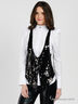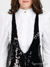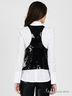 Эффектный жилет приталенного силуэта выполнен из джерси с пайетками. Застежка на крючки, спинка-борцовка, фигурный крой низа изделия. Отличное дополнение к вечернему наряду!