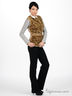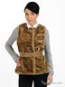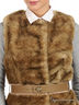 Детали: круглый вырез, без рукавов, застегивается на кнопки, отрезной пояс со шлевками, талия подчеркнута оригинальным ремнем с золотистым декором