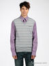 Трикотажный мужской жилет. V-образная горловина. Ворот, проймы и низ изделия посажены на трикотажную резинку.