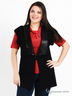 Эффектный жилет из плотного трикотажа. Свободного покроя изделие. V-образный вырез горловины. Отложной ворот из бархатистой ткани с печатным рисунком. Застежка спереди на пуговицу.