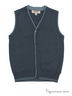 Вязанный жилет, выполненный из мягкого трикотажа с V-образным вырезом горловины. Горловина, пройма и низ изделия - вязанная трикотажная резинка. Застежка - пуговицы.