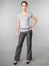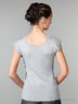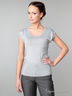 Детали: округлый вырез горловины и проймы дополнены трикотажной тесьмой, боковые швы дополнены пуговицами.