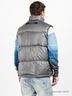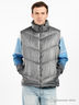 Теплый жилет прямого кроя из материала джордан. Утеплитель-синтепон. Воротник-стойка. Застежка на молнию. Без рукавов. Спереди 2 прорезных кармана.