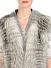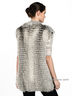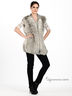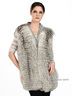 Очаровательный жилет из лисьего меха. Изделие выполнено из шелковистой ткани с пристроченными лентами меха. Шелковистая подкладка. Застежка на кнопки. По бокам изделия трикотажные вставки в рубчик.