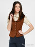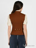 Стильный жилет приталенного силуэта из плотной ткани с тонкой шелковистой подкладкой. Ворот-стойка с лацканами, застежка на пуговицы, два кармана, декоративная прострочка, на спине хлястик с пуговицами. Отличный вариант на каждый день.