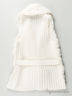 Теплый жилет выполнен из кашкорсе и из искусственного меха. Отложной воротник-шалька, застежка на два крючка, в шлевки продет трикотажный поясок.
