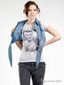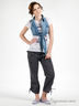 Короткий жилет из хлопковой джинсы. Отложной воротник. Застегивается на пуговицы. Под грудью завязки. Маленький накладной карман на груди. На спинке декоративная вышивка пайетками.