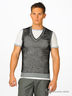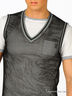 Стильный оригинальный жилет из вязанного в виде сетки трикотажа, c V-образным вырезом горловины. Окаты рукавов, пояс и вырез горловины выполнены из трикотажной резинки.
