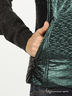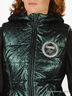 Стильный утепленный жилет из непромокаемого материала с ярким лоском. Капюшон с многорядной резинкой по краю. Проймы так же посажены на многорядную резинку. Застегивается на молнию. Два прорезных кармана на молнии.
