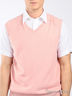 Трикотажный жилет с V-образным вырезом. Горловина, проймы и низ изделия посажены на трикотажные резинки. Плечи с кокеткой.