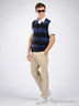 Трикотажный жилет в полоску. V-образная горловина. Широкие проймы. Горловина, проймы и низ изделия посажены на трикотажную резинку.