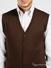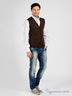 Отличный мужской жилет с V-образным вырезом горловины и застежкой на пуговицы. Все вырезы изделия выполнены из трикотажной резинки оформленной в рубчик.