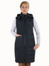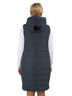 Жилет прямого кроя. Капюшон, воротник-стойка. Спереди застежка на молнию, по бокам карманы. Длина изделия: 95 см.