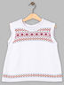 Жилет прямого кроя без рукавов. Модель с круглым вырезом украшена узором.
