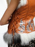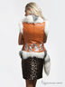 Ярко - рыжий цвет жилета - прекрасно греет тело и подымат настроение в ненастье. Дома , в офисе, в авто - Вы всегда в тонусе, пушистая и очаровательная. Богатый воротник - шалька из песца оттеняет Вашу кожу. Меховая опушка по проймам. Жилет утеплен синтепоном . Подкладка - жаккард, внутренний боковой кармашек. По бокам жилета - шнуровка, дающая возможность регулировать объем. Боковые карманы - утопающая ластовица, отделаны декоративной пряжкой со стразами. Застежка - разъемная пряжка. Подвесной на карабине хвост (петли для подвески на обеих сторонах). Ручная роспись повышенной износостойкости по бокам жилета и по спинке.