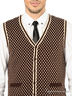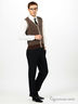 Детали: V-образный вырез горловины, без рукавов, застежка на пуговицах, два листочка с лицевой стороны имитируют кармашки, по низу изделия трикотажная резинка, ткань с лицевой стороны с узором - квадраты.