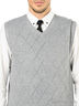 Детали: V-образный вырез горловины, без рукавов, по краям изделия трикотажная резинка, ткань с лицевой стороны с перфорированным узором - ромбы.