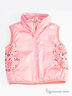 Утепленный жилет на синтепоне для девочки. Выполнен из гладкой плащевки с подкладкой. Ворот-стойка на кулиске, застежка на молнию, два кармана. Декорирован вставками с рисунком.