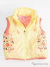 Утепленный жилет на синтепоне для девочки. Выполнен из гладкой плащевки с подкладкой. Ворот-стойка на кулиске, застежка на молнию, два кармана. Декорирован вставками с рисунком.