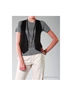 Оригинальный жилет приталенного силуэта. V-образный вырез горловины. Без рукавов. Спереди застежка на пуговицы.