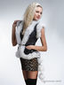 Стильный женский жилет. Удобен для носки в прохладную погоду в офисе и авто. Натуральная кожа, отделанная мехом песца. Накладные боковые карманы с декоративными складками и декоративными пуговицами со стразами. Богатый воротник-шалька, меховая отделка по пройме. Пристегиваемый на карабине хвост (петли пристежки с обеих сторон). По бокам жилета - шнуровка, дающая возможность регулировать объем. Жилет утеплен синтепоном, подкладка - жаккардовая, боковой накладной кармашек.