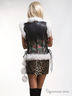 Стильный женский жилет. Удобен для носки в прохладную погоду в офисе и авто. Натуральная кожа, отделанная мехом песца. Накладные боковые карманы с декоративными складками и декоративными пуговицами со стразами. меховая отделка по пройме .Пристегиваемый на карабине хвост (петли пристежки с обеих сторон).По бокам жилета -шнуровка, дающая возможность регулировать объем. Жилет утеплен синтепоном, подкладка- жаккардовая, боковой накладной кармашек. Ручная роспись-Розы.